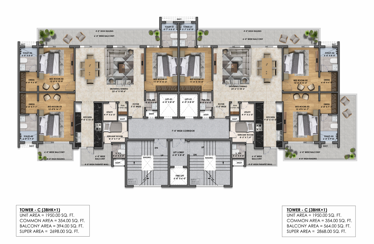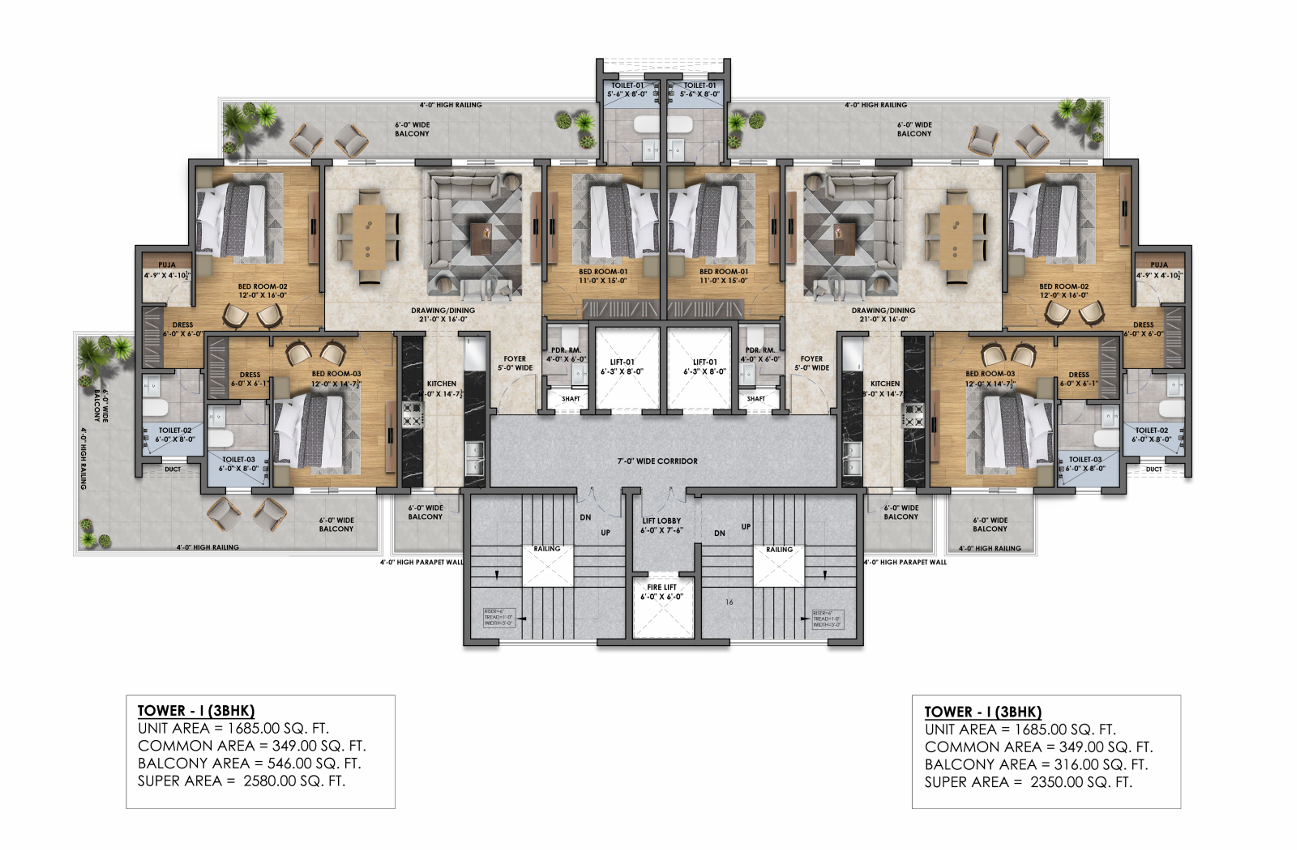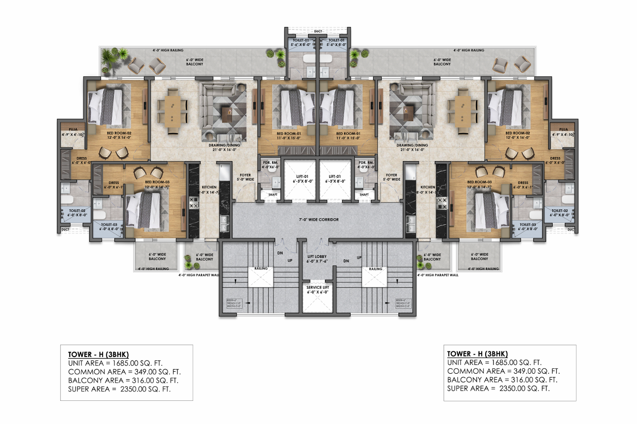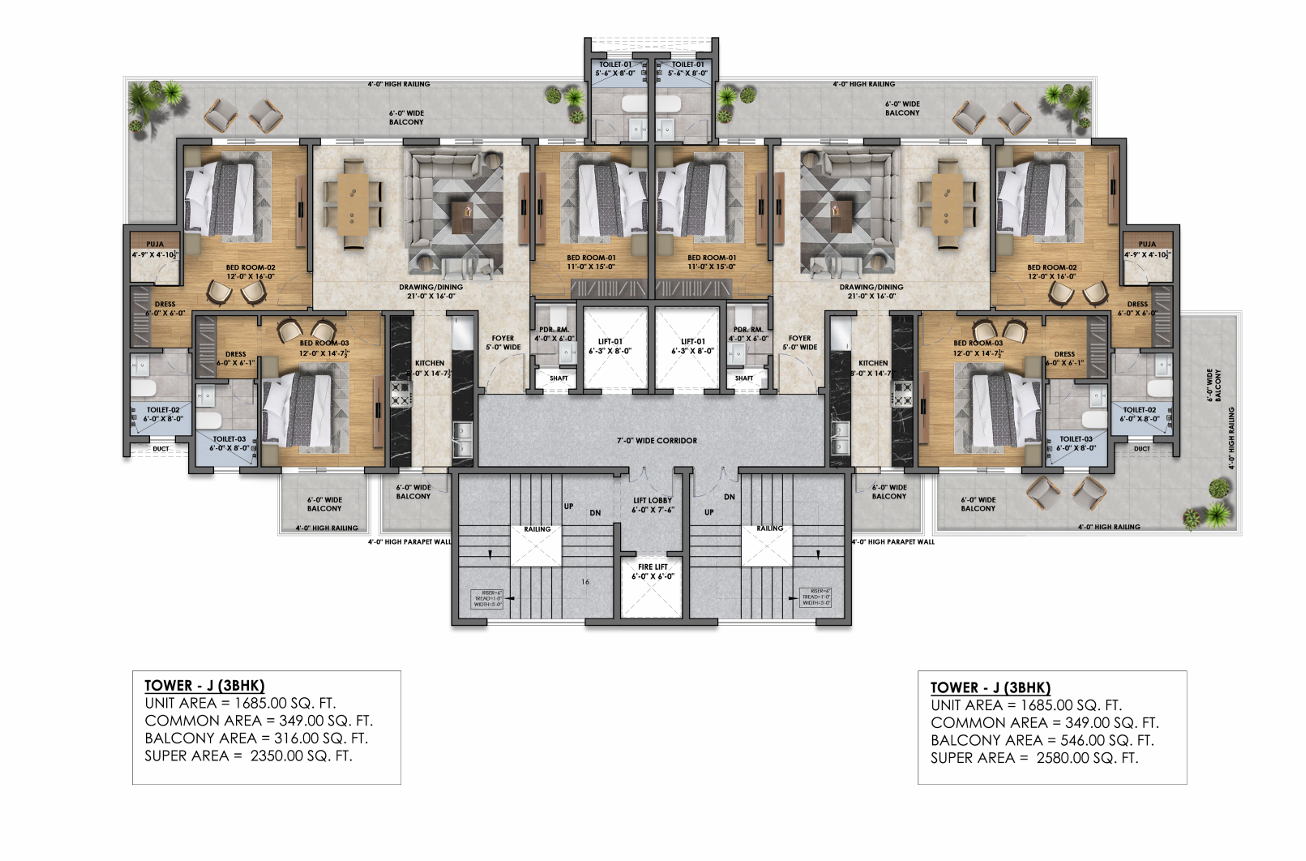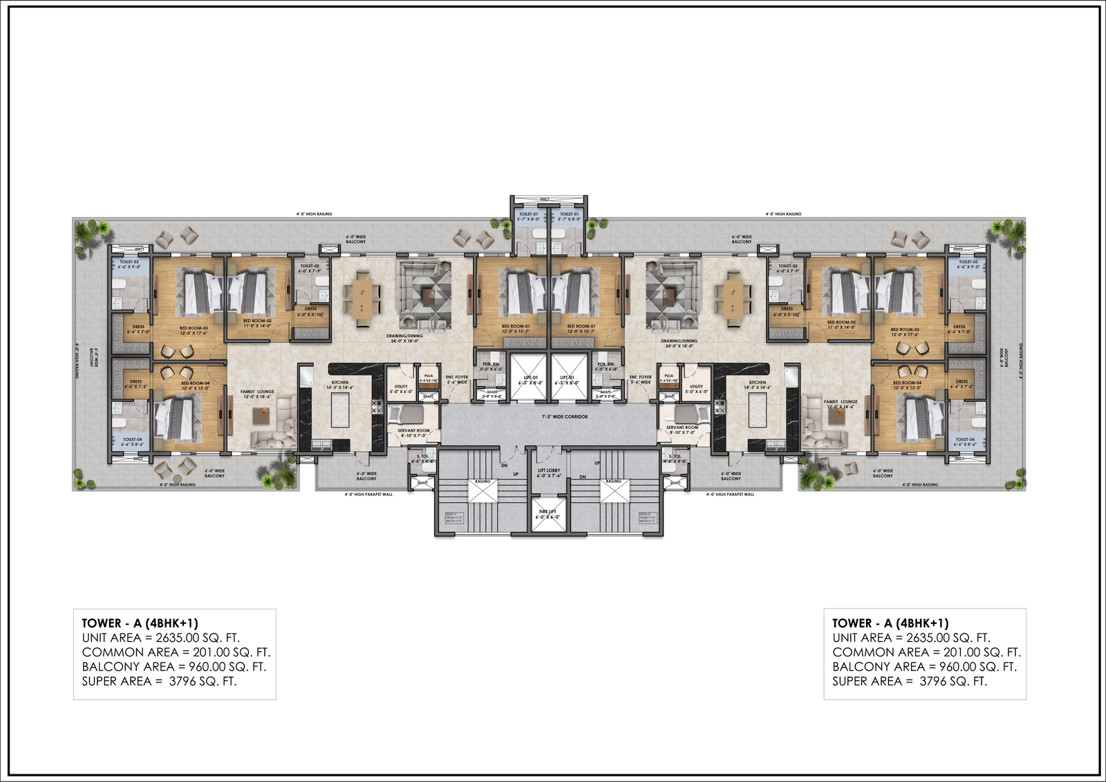 - Banquet Hall, Work station, Library,Mini Theatre, Recreational park for Toddlers and many more..